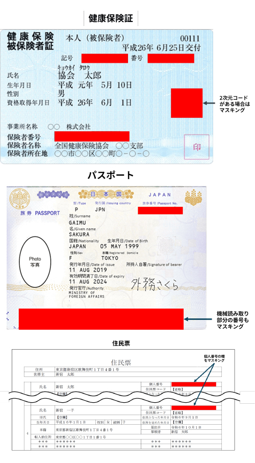②必要に応じて本人確認書類の一部情報をマスキング(個人番号・保険証番号等)